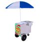 Carrinho de Açaí R2 com Roda Pneumática e Guarda-Sol Parte inferior em chapa branca com pintura epóxi eletrostática é que mais resistente. A Parte superior Inteira em aço Inox, juntamente com os dois compartimentos para granolas, cereais e etc.. Possui uma gaveta na parte traseira com 3 repartições. Possui compartimento para manter o açaí em temperatura ideal para ser consumido, deve ser usado com placas de gelo, gelo ou placas eutéticas garantindo um sabor agradável para os seus clientes. Acompanha: 01 Adesivo na parte da frente, 02 Pneus são com câmara de ar, 01 Rodízio Giratório 4''. Medida do Carrinho: Altura: 89 cm, Largura: 64 cm, Comprimento: 99 cm, Peso: 40 kg. Medida Interna: Profundidade: 56 cm, Largura: 40 cm, Comprimento: 40 cm. Medida de Embalagem: Atura: 94 cm, Largura: 70 cm, Comprimento: 1,05 m, Peso : 43 kg. *Aqui na Alcamar você encontra os melhores equipamentos para seu negócio!