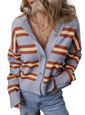 Moda e AcessóriosModaSuéter e CardiganCasaco De Lã Feminino Evaless, Cortado, Listrado, 2024, Outono-inverno
