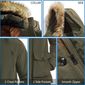 - Forro De Lã Quente, Capuz Removível De Pele Com Zíper E Punhos Canelados.