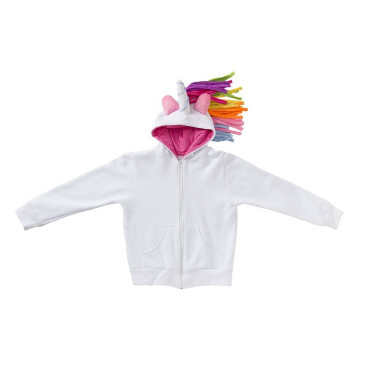 Aconchego e estilo para as pequenas com o Casaco De Moletom Dani Lessa Unicórnio Branco. Principais Características: Formato de Unicórnio, Manga longa, Fecho frontal em zíper, Composição: tecido de moletom, Lavar com cores similares e não usar alvejantes. As pequenas estilosas agora irão desfilar a caráter por aí com esta incrível blusa da Dani Lessa. Tema de unicórnio. A peça é ideal para levar conforto e aconchego às pimpolhas quando os dias mais frios virem com tudo. É mágico. Medidas: P: (AxL) 47x42cm.