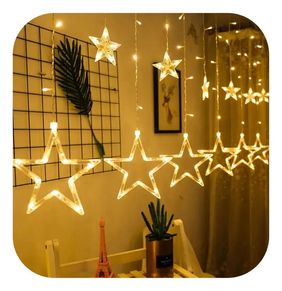 Cascata Led Com Estrelas Dec Branco-quente 110v