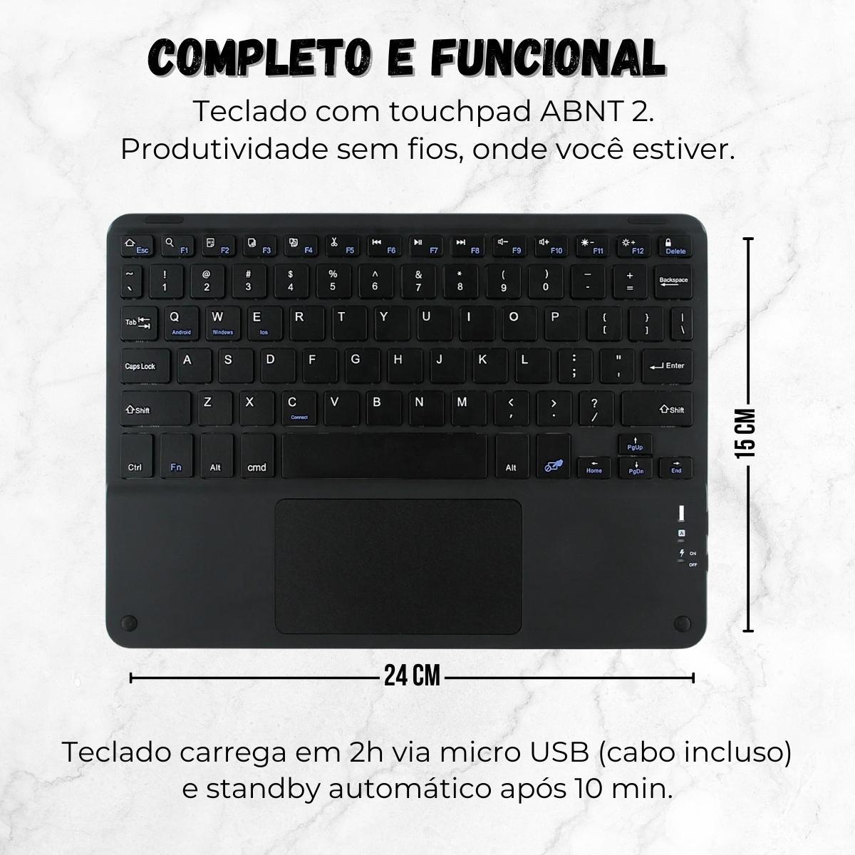 O Kit É Composto Por Case Bag Em Silicone, Teclado Bluetooth Com Touchpad, Permitindo Digitar, Navegar E Usar O Tablet Com Muito Mais Eficiência, Sem Depender Da Tela Touch O Tempo Todo. Ideal Para Quem Precisa De Produtividade Em Qualquer Lugar, O Teclado Com Touchpad Oferece Navegação Semelhante À De Um Notebook, O Mouse Garante Mais Precisão E A Case Bag Em Silicone Protege O Tablet Contra Riscos, Poeira E Pequenos Impactos Do Uso Diário. Adquira Agora Seu Kit Completo E Leve Mais Praticidade, Ergonomia E Produtividade Para O Seu Dia A Dia. Compatível Com Ipads, Tablets Android, Windows E Muito Mais