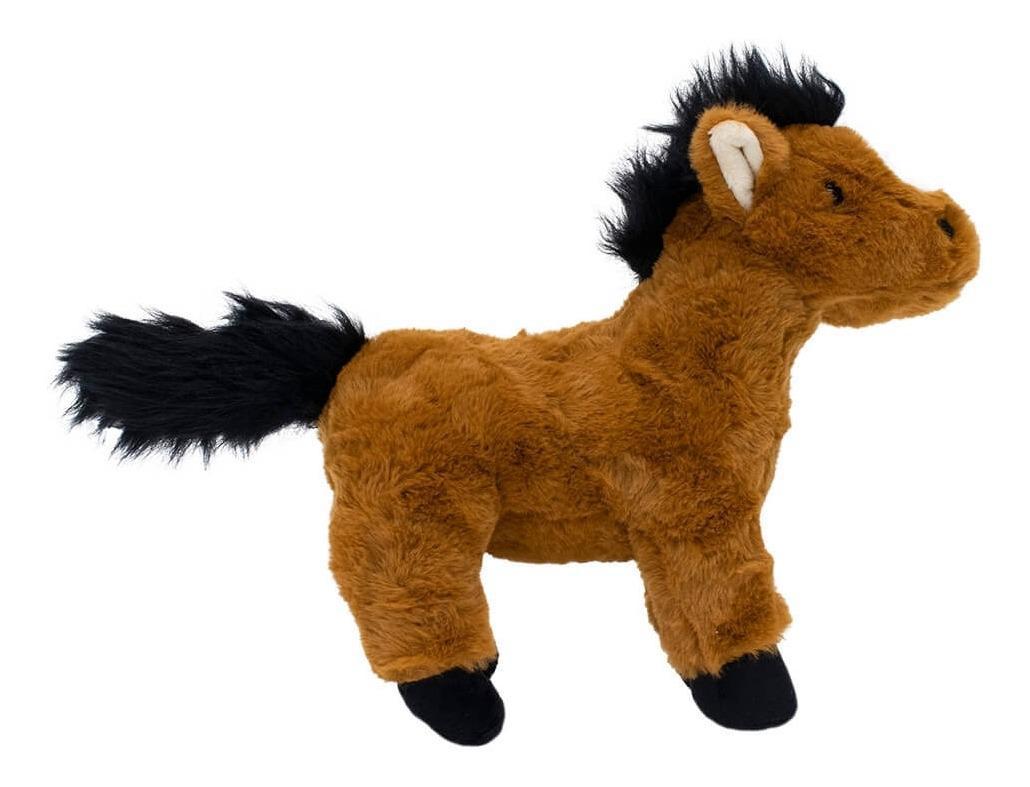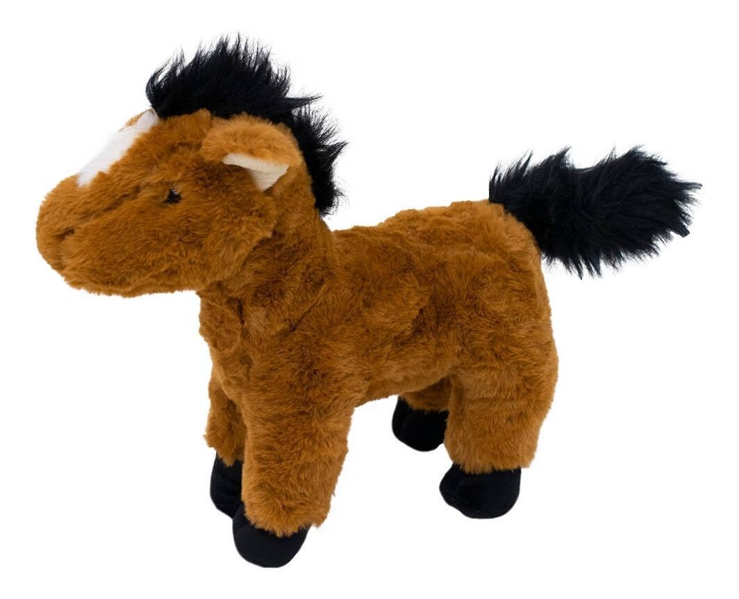 cavalo De Pelúcia Na Cor Marrom Com 23 Cm De Comprimento. Olhos De Plástico.