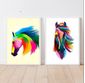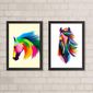 Kit 2 Quadros Decorativos Arte Cavalos Coloridos 45x34cm