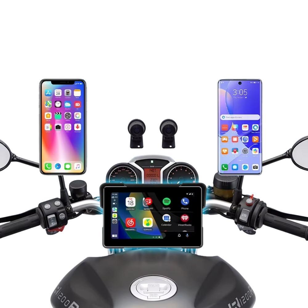 Sistema Multimídia para Motocicletas - Tela Touch IP67 À Prova D'água com Câmeras