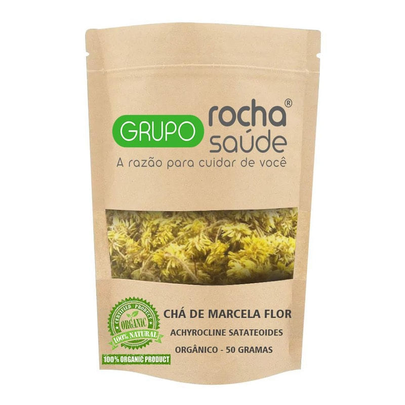 Chá de Marcela Flor - Achyrocline Satateoides.Partes Usadas: Flores .Origem do Chá: Nosso Brasil.Peso: 50 gramas (média 30 a 40 porções de chá)..Informações e Benefícios do seu Chá:.A macela é uma planta medicinal, também conhecida como Alecrim-de-parede, Camomila-nacional, Carrapichinho-de-agulha, Macela-de-campo, Macela-amarelo ou Macelinha, muito utilizada como remédio caseiro para acalmar..O seu nome científico é Achyrocline satureioides...Preparo: você deve tomar quatro xícaras por dia. Coloque 1 litro de água filtrada numa panela e leve ao fogo alto. Quando começar a levantar fervura, desligue a chama e acrescente o mix de ervas escolhido – use a medida de 1 á 2 colher (sopa) para toda a mistura das ervas secas. Tampe a panela por cinco minutos. Depois coe e tome gelado (ou frio ou morno). Atenção: O chá não pode ser reaquecido depois de frio, portanto, para manter a temperatura quente, armazene a bebida numa garrafa térmica. O chá gelado deve ser acondicionado na geladeira. Seja como for, consuma em, no máximo, dez horas após o preparo.. .Importante: Símbolo de conforto e relaxamento, o chá e cercado de tradições. Uma xícara fumegante de uma in fusão perfumada pode, além de aquecer o corpo, aumentar sua disposição e trazer benefícios para sua saúde e bem-estar. Para aproveitar ao máximo as propriedades e benefícios do Chá, deve-se consumido no mesmo dia do preparo. Podendo ser ingerido quente ou frio. Cuidado em caso de gestação, nutrizes e crianças abaixo de 6 anos. Consulte sempre um médico ou nutricionista. Dica: Evite recipiente de alumínio, prefira ágata ou jarra de vidro. Não adoce chá. Caso contrário opte por mel, açúcar mascavo ou stevia. Manter em local seco e fresco, longe do alcance de crianças. Não expor ao sol.O chá e um produto natural, isento de registro no m.S conforme resolução rdc nº 240/2018. Dispensado a rotulagem nutricional, resolução rdc anvisa nº 360 de 23/12/2013.