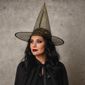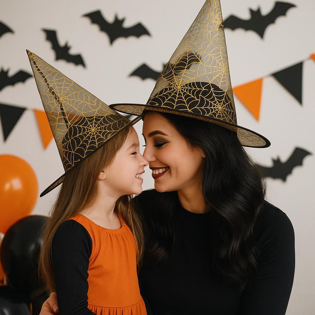 Chapéu De Bruxa Com Teia - Acessório Elegante E Temático Para Fantasias De Halloween. Produzido Em Tecido Leve E Translúcido, Com Acabamento De Aranha E Teias Em Detalhes Dourados, Garantindo Um Visual Sofisticado E Chamativo. Ideal Para Festas, Eventos Temáticos E Apresentações, Proporcionando Conforto E Estilo Durante O Uso.