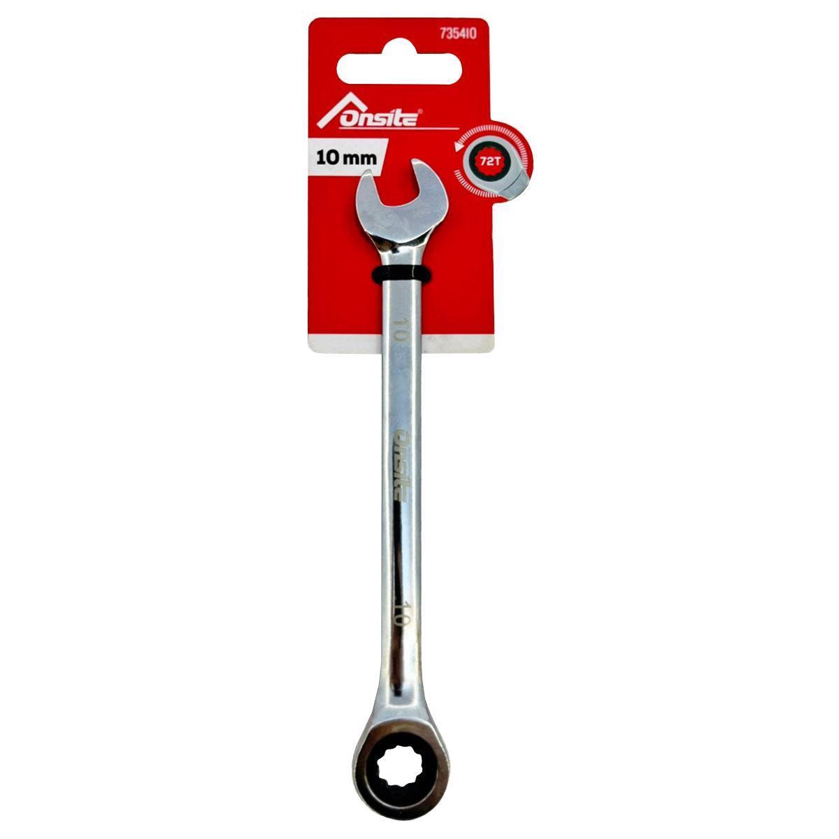 A Chave Combinada Com Catraca Pl 10mm (735410) - Onsite, É Uma Versão Aprimorada Da Chave Combinada Tradicional, Pois Um Dos Seus Lados, Geralmente O Lado Estrela (ou Anelado), Possui Um Mecanismo De Catraca Que Permite Girar Parafusos E Porcas De Forma Contínua Sem A Necessidade De Reposicionar A Chave A Cada Movimento. O Outro Lado Continua Sendo Uma Chave Fixa (ou Aberta).