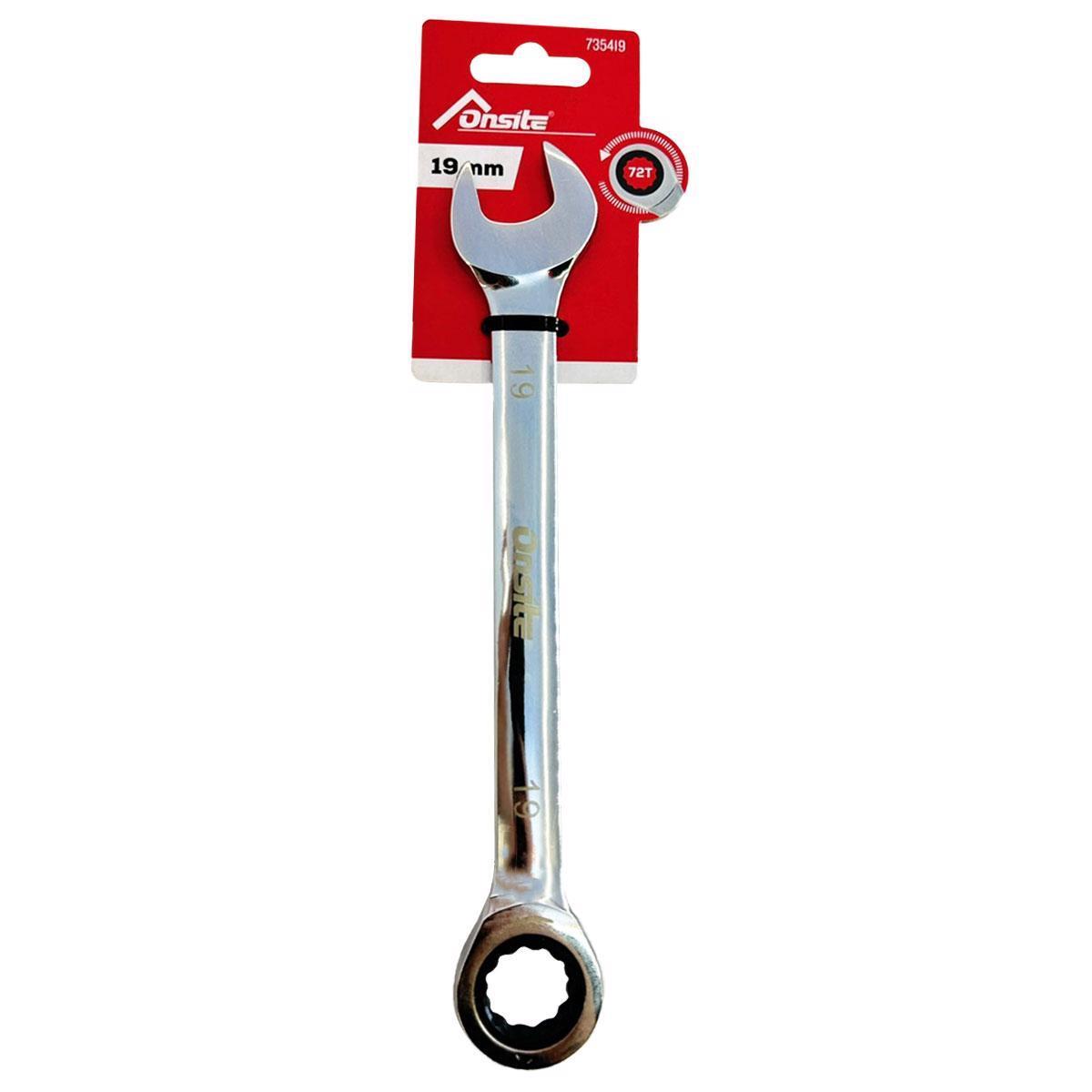 A Chave Combinada Com Catraca Pl 19mm (735419) - Onsite, É Uma Versão Aprimorada Da Chave Combinada Tradicional, Pois Um Dos Seus Lados, Geralmente O Lado Estrela (ou Anelado), Possui Um Mecanismo De Catraca Que Permite Girar Parafusos E Porcas De Forma Contínua Sem A Necessidade De Reposicionar A Chave A Cada Movimento. O Outro Lado Continua Sendo Uma Chave Fixa (ou Aberta).