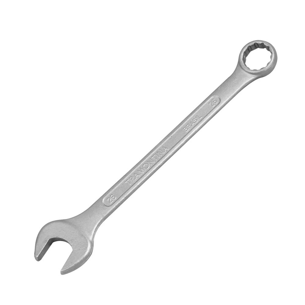 Chave combinada possui uma boca do tipo estrela e outra fixa. É indicada para realizar trabalhos envolvendo porcas e parafusos com ambas as bocas. Garante alta resistência e durabilidade.Marca: TramontinaCaracterísticas:-Medida: 26mm.-Corpo forjado em aço especial.-Acabamento cromado.-Possui uma boca do tipo estrela e outra fixa, ambos da mesma medida.Conteúdo:1 Chave Combinada.Aplicação: Ideal para aperto e desaperto de porcas e parafusos quadrados e sextavados.Código: 41128126