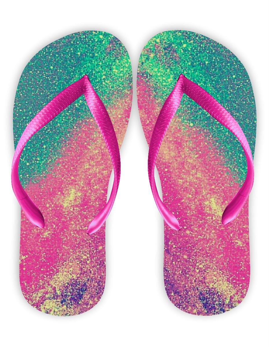 Chinelo Colorido Verde e Rosa Gliter