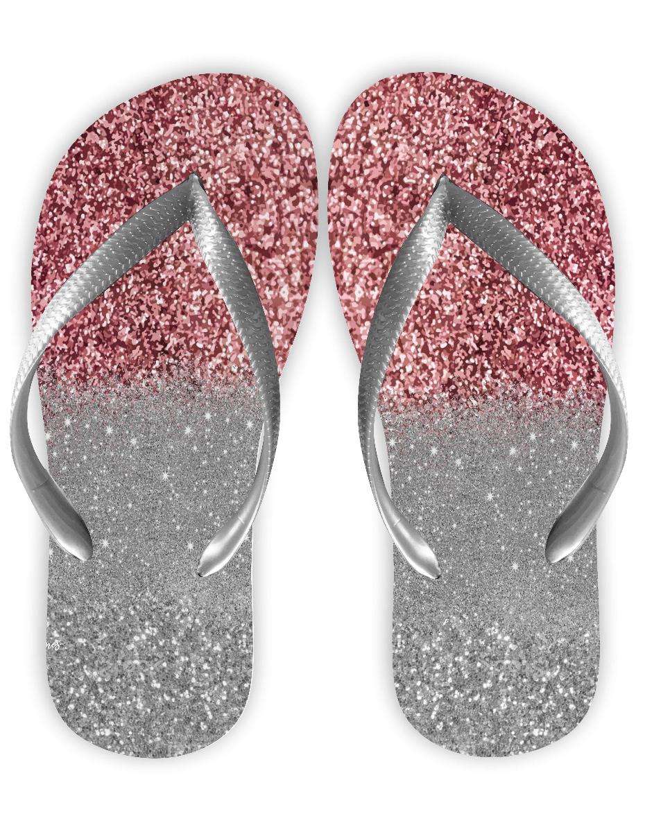 Chinelo Gliter Rosê e Prata