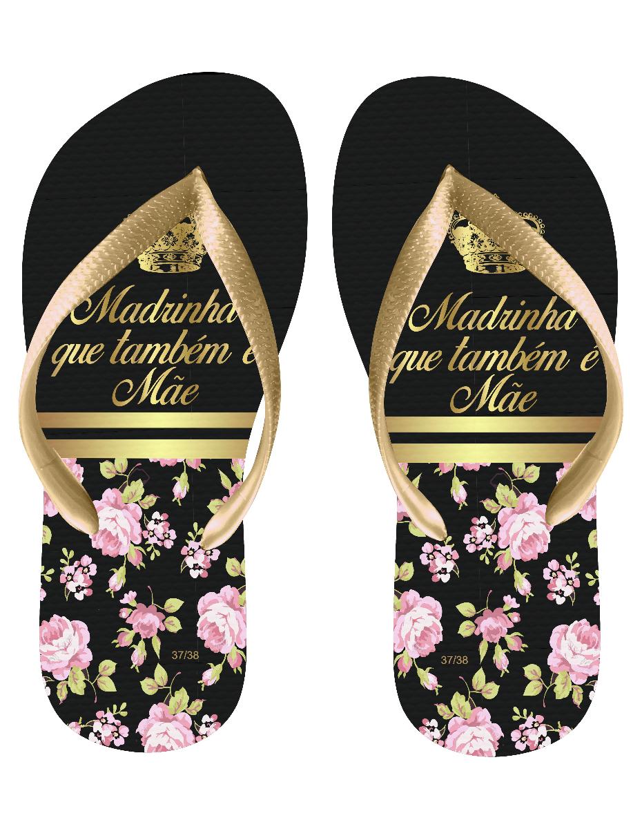 CalçadosChinelosChinelo temático Madrinha Também é Mãe Preto com Dourado