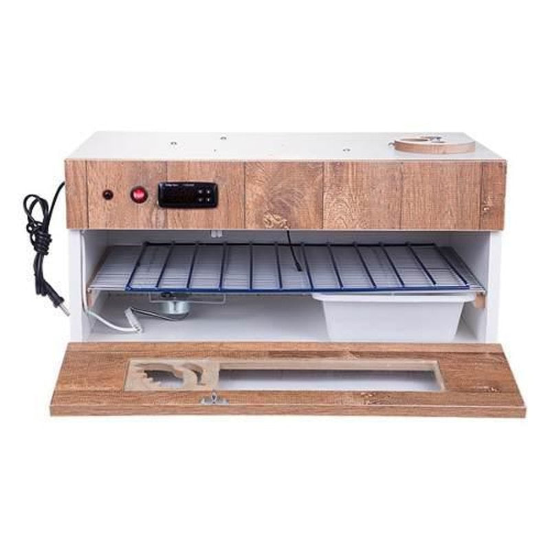 Chocadeira automática premium pid (120 ovos) .. ..Ref: pvp12ob..Descrição:..Chocadeira automática para 120 ovo (de galinha, médio de até 50 gramas)..Tensão/voltagem: 110v / 220v bivolt (através de chave seletora)..Sistema de viragem dos ovos automático de 1 em 1 hora ..Fabricada em mdf dupla face western com tratamento anti-bactericida e anti-fungicida..Design sofisticado / moderno..Controle de temperatura (pid) 100 % estável..Grades anti-ferrugem..Sistema exclusivo de ventilação / melhor eficiência na distribuição do calor..Ovoscópio (não acompanha lâmpada).. ..Especificações técnicas:..Dimensões aproximadas do produto: c 0,64cm x l 0,57cm x a0, 35cm..Peso aproximado do produto: 18 kg..Consumo (kw): 200w - (0,20kw-hora)..Tensão/voltagem: 110v / 220v bivolt (através da chave seletora)..Garantia 1 ano... ..Conteúdo da embalagem: ..1 chocadeira com ovoscópio acoplado..- 1 jogo de grade com motor..- 1 bandeja d' água média..- manual