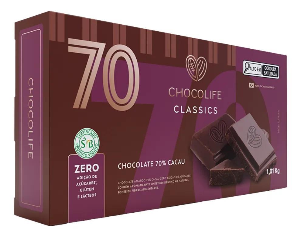 Chocolate 70% Chocolife Zero Gluten Lactose E Zero Açucar 1