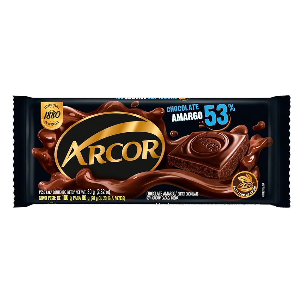 Chocolate Em Barra Arcor Amargo 53% Cacau 80g
