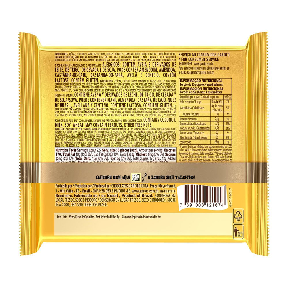 MerceariaGuloseimasChocolates e BombonsChocolate Garoto Talento Branco Com Cereais E Passas 85g