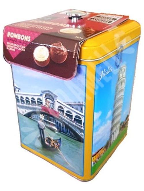 Desfrute Da Indulgência Dos Deliciosos Bombons De Chocolate Ao Leite, Diretamente Da Itália. Cada Bombom É Habilmente Recheado Com Dois Irresistíveis Cremes: O Rico Creme De Cacau E O Suave Creme Branco. Este Deleite Requintado É Apresentado Em Uma Encantadora Lata Metálica Adornada Com Imagens Da Deslumbrante Cidade Italiana Da Sicília, Tornando-os Não Apenas Uma Delícia Para O Paladar, Mas Também Uma Peça Encantadora.