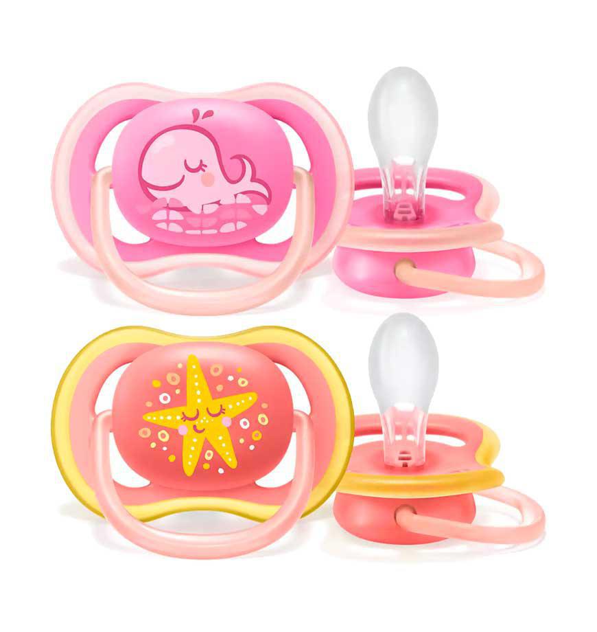 a Chupeta Ultra Air 6 A 18 Meses Esterilizável Dupla Menina Baleia Da Philips Avent É Uma Chupeta Leve Que Deixa A Pele Respirar, Com Orifíos Grandes Para Entrada De Ar. A Chupeta Ultra Air Foi Desenvolvida Para Permitir O Máximo Fluxo De Ar, Para Que A Pele Sensível Do Bebê Possa Respirar. A Pele Sensível Do Bebê Mantém-se Mais Seca Ao Mesmo Tempo Que A Chupeta O Acalma. O Escudo Ultra Air É Leve E Possui Cantos Arredondados Para Maior Conforto Do Bebê.