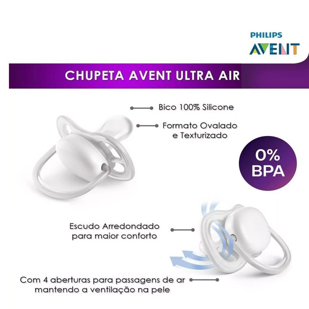 Uma Chupeta Leve E Com Aberturas De Ar Para A Pele Sensível Do Bebê. Grandes Aberturas Para Permitir Que A Pele Do Bebê Respire. Deixe A Pele Do Seu Bebê Respirar Com A Chupeta Philips Avent Ultra Air, Que Possui 4 Grandes Aberturas E Um Escudo Leve Desenhado Para O O Máximo De Fluxo De Ar, Para Que A Pele Do Bebê Continue Seca Enquanto Usa A Chupeta.