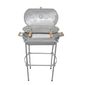 Churrasqueira Alumínio Fundido A Bafo Prata Pé E Suporte churrasqueira A Bafo De Alumínio Fundido, Com Grelhade Alumínio Fundido E Alça De Madeira, Conta Tambémcom Chaminé Na Tampa Superior Para Saída De Fumaça,que Pode Ser Fechada. Portátil E Compacta, Ideal Paracamping, Bares, Barcos, Apartamentos, Varandas, Cozinhase Áreas De Lazer Em Grande Ou Pequeno Espaço, Possui Umrápido Aquecimento Que Proporciona Economia De Carvão.exclusivo Mecânismo Para Fechamento Da Chaminé. especificações Técnicas Churrasqueira:comprimento Total ( Alça A Alça ): 59cm.altura Do Fundo Até A Grelha: 15cm.comprimento Da Grelha: 47cm.largura Churrasqueira: 27cm.altura Churrasqueira: 30cm.largura Da Grelha: 26cm.peso: 5,800kg. especificações Técnicas Do Pé: altura Total Pé E Churrasqueira: 90cm.altura Somente Do Pé: 74cm.peso: 2,200kg. itens Inclusos:01 Churrasqueira Alumínio Fundido Grosso A Bafo Cinza Pé E Suporte.01 Pé Suporte Da Churrasqueira. código: 01555.prata+pé.
