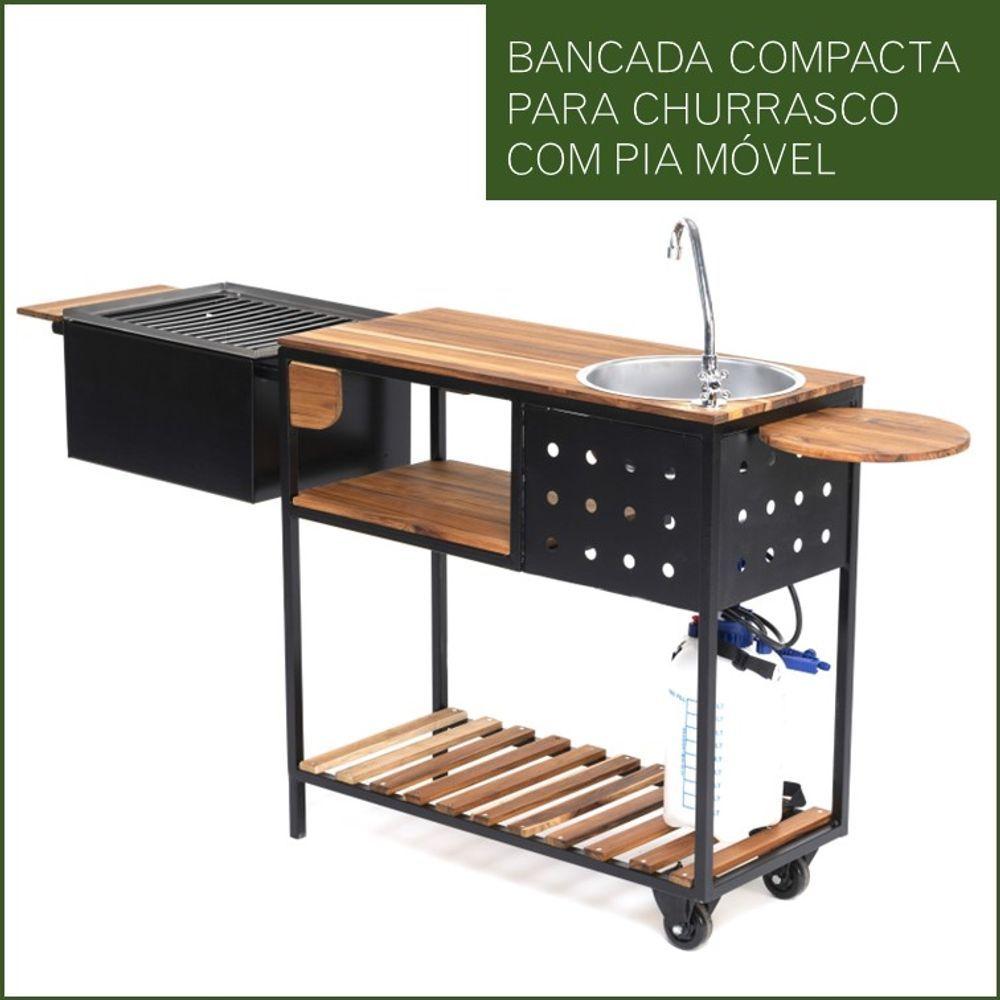 Churrasqueira Móvel Com Pia Completa (b-grill Cp 46)churrasqueira Compacta Com Pia Móvela B-grill Cp46 É A Primeira Churrasqueira Do Mercado Com Pia Móvel E Sem Nenhuma Conexão Hidráulica Externa. É Composta De Uma Estrutura Em Aço, Com Superfície De Corte Em Madeira Natural Teca, Pia De Inox Com Tanque De Reservatório De Água Limpa E Outro Tanque Para Água Contaminada (descarga Da Pia). A Churrasqueira É Estilho Parrilla Com Grelha Removível, Permitindo Um Excelente Serviço De Churrasco Para Até 20 Pessoas. Possui Ainda 2 Rodízios Industriais Para Fácil Locomoção, E Pode Receber Adaptação Para Rodas Maiores De Transporte Em Terreno Muito Macio (areia De Praia Por Exemplo).importante:1) Produto Fornecido Semi Montado (torneira E Sistema Da Pia Devem Ser Montadas Pelo Cliente | Churrasqueira Apenas Acoplada)características Técnicas:largura: 86 Cmaltura: 70 Cmprofundidade: 37 Cmmaterial Da Estrutura: Aço Carbobo Tubularpintura Da Estrutura: Epóx Líquidomaterial Da Superfície: Madeira Natural Teka 10 Mm Espessuramaterial Grelha: Aço Inox