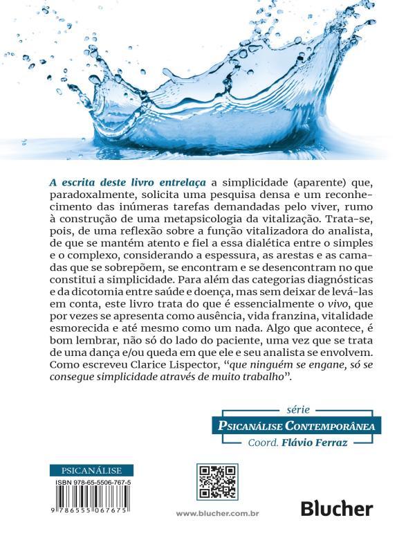 A Escrita Deste Livro Entrelaça A Simplicidade (aparente) Que, Paradoxalmente, Solicita Uma Pesquisa Densa E Um Reconhecimento Das Inúmeras Tarefas Demandadas Pelo Viver, Rumo À Construção De Uma Metapsicologia Da Vitalização. Trata-se, Pois, De Uma Reflexão Sobre A Função Vitalizadora Do Analista, De Que Se Mantém Atento E Fiel A Essa Dialética Entre O Simples E O Complexo, Considerando A Espessura, As Arestas E As Camadas Que Se Sobrepõem, Se Encontram E Se Desencontram No Que Constitui A Simplicidade. Para Além Das Categorias Diagnósticas E Da Dicotomia Entre Saúde E Doença, Mas Sem Deixar De Levá-las Em Conta, Este Livro Trata Do Que É Essencialmente O Vivo, Que Por Vezes Se Apresenta Como Ausência, Vida Franzina, Vitalidade Esmorecida E Até Mesmo Como Um Nada. Algo Que Acontece, É Bom Lembrar, Não Só Do Lado Do Paciente, Uma Vez Que Se Trata De Uma Dança E/ou Queda Em Que Ele E Seu Analista Se Envolvem. Como Escreveu Clarice Lispector, “que Ninguém Se Engane, Só Se Consegue Simplicidade Através De Muito Trabalho”.