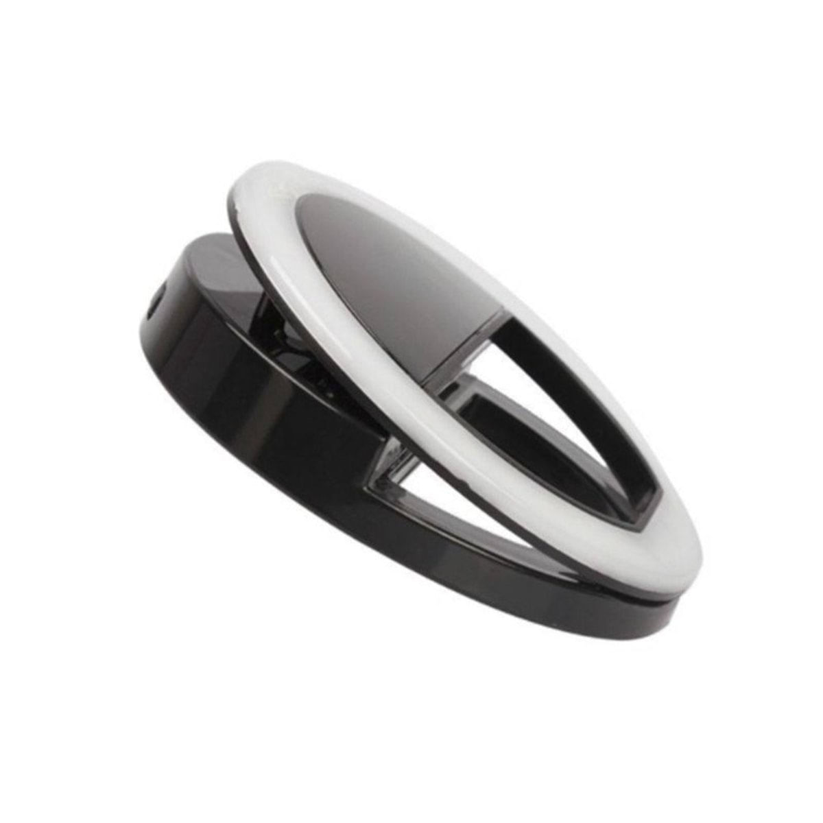 Clipe Anel Led Luz Selfie p/ celular - PRETO. . A luz de selfie anel luminoso em LED é ideal para tirar fotos em locais com pouca luz e encaixa no seu celular. A câmera fica bem no espacinho vazado, super simples de usar, tem com um botão que você usa para ligar, desligar e controlar a intensidade da luz (Três intensidades, fortes). Utiliza duas pilhas tamanho AAA. Com ela suas selfies ficarão incríveis. . . Especificações:. . -Dimensão: 84x84x28mm. -Material: Plástico. -Bateria: 2 Pilhas AAA (não inclusas). -Peso: 70g. -36 luzes LED. -Clipe de espessura: 1cm. -Use 360 graus light para destacar o seu rosto e fazer o seu rosto efeito estéreo. -Pode ser aplicado a qualquer smartphone/laptop/câmera Ou uso independente