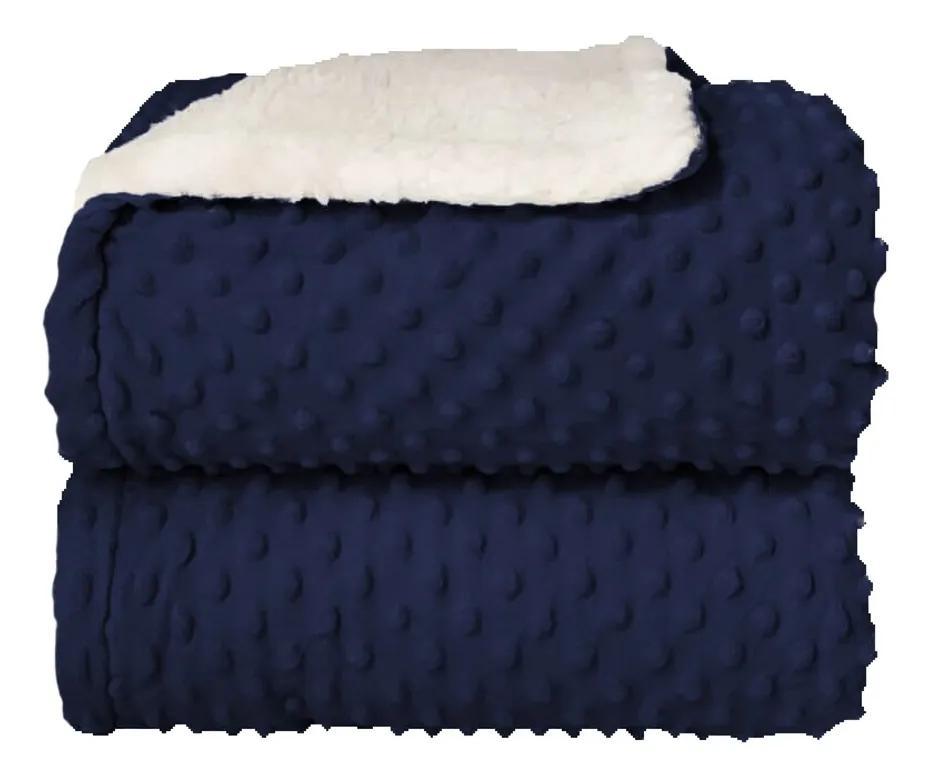 Cobertor Donna Bebê Plush Com Sherpa Dots Azul Navy