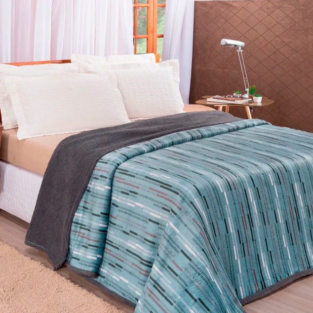 Cobertor Com Manta Estampado E Sherpa Verde Casa Dona