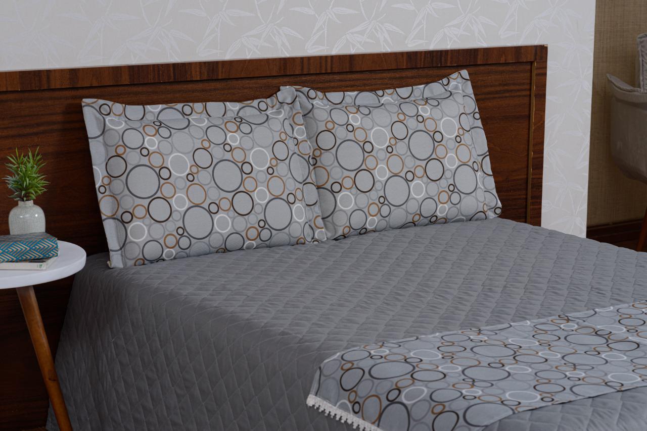 Cobre Leito Com Xale E Fronhas Estampado Bolinhas 4 Peças Queen