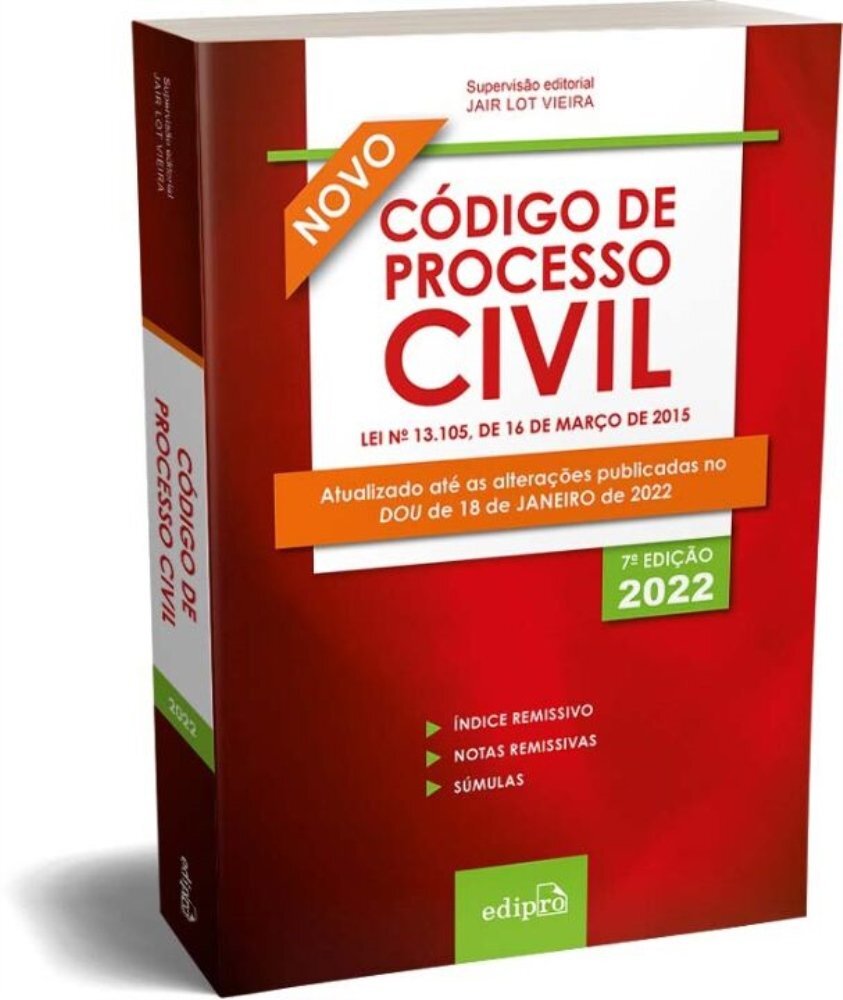 Código De Processo Civil Lei Nº 13.105, De 16 De Março De 2015 Atualizado Até A Lei Nº 14.195, De 26 De Agosto De 2021, E Até O Dou De 18 De Janeiro De 2022 O Novo Código De Processo Civil É O Primeiro A Ser Aprovado Após A Redemocratização Do País. Elaborado Com Grande Participação Da Sociedade, Tem Por Objetivos Centrais Atender À Garantia Do Amplo Direito De Defesa E Do Contraditório, À Duração Razoável Do Processo Legal E À Eficácia Das Decisões Judiciais. Inclui: Índice Remissivo, Notas Remissivas, Lei De Introdução Às Normas Do Direito Brasileiro E Regulamento, Resoluções Do Tst E Resoluções Do Cnj, Enunciados Do Fppc, Da Enfam, Do Cjf E Do Stj, Súmulas E Súmulas Vinculantes Do Stf, Temas Com Repercussão Geral Do Stf, Súmulas Do Stj.