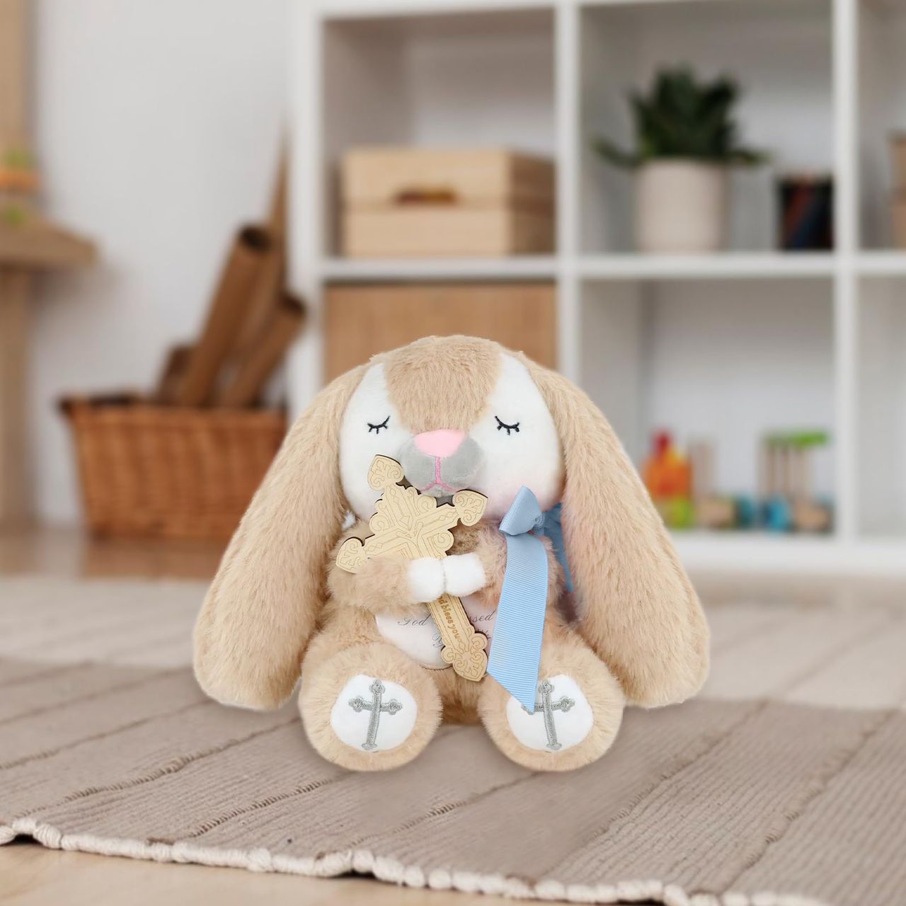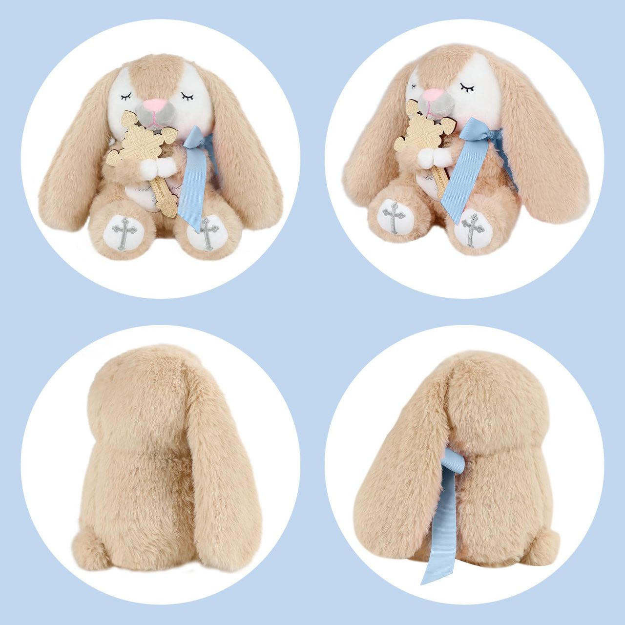 - Coelho De Pelúcia Rezando Com Cruz, Batismo, Batismo Ou Presente De Páscoa Perfeito Para Crianças.