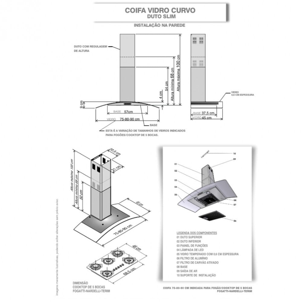 Cozinha limpinha, sem gordura é outra coisa, não é Os lançamentos de Coifas Vidro Curvo Color da Nardelli, além de dar um colorido muito especial à sua cozinha, ainda vem com detalhes incríveis, como a iluminação com lâmpadas led, duto externo com regulagem de altura, vidro curvo e temperado, o que facilita a limpeza, acompanha filtro de alumínio e filtro de carvão ativado e, claro um design inovador, exclusivo da Nardelli. Linha de coifas coloridas da Nardelli. Sua cozinha com um charme superespecial. Características: Função: depurador e exaustor Filtro: carvão ativado Filtro: metálico em alumínio Comando Easy Touch 3 velocidades Iluminação com lâmpadas de Led Sucção: Até 550 m³h Duto externo dividido em: superior e inferior com regulagem de altura (mín. 50 cm, máx. 93 cm) Especificações Técnicas: Frequência: 60 Hz Ruído: 65 dB Potência do Motor: 140 W Potência Total: 142 W Velocidades: 03 Potência Lâmpadas: 1 W (x2) Consumo: 0,142 kWh Dimensões do Produto: Altura: 93 cm Largura: 90 cm Profundidade: 45 cm Peso : 10,38 Kg As dimensões do produto podem sofrer uma pequena variação de tamanho. Por este motivo, quando a coifa for instalada de forma embutida em nichos, o fabricante recomenda que seja considerada uma folga de pelo menos 1 cm em cada lado. Tubo sanfonado para exaustão não acompanha o produto, seu diâmetro de saída é de 127mm Garantia do Fornecedor de 12 meses.
