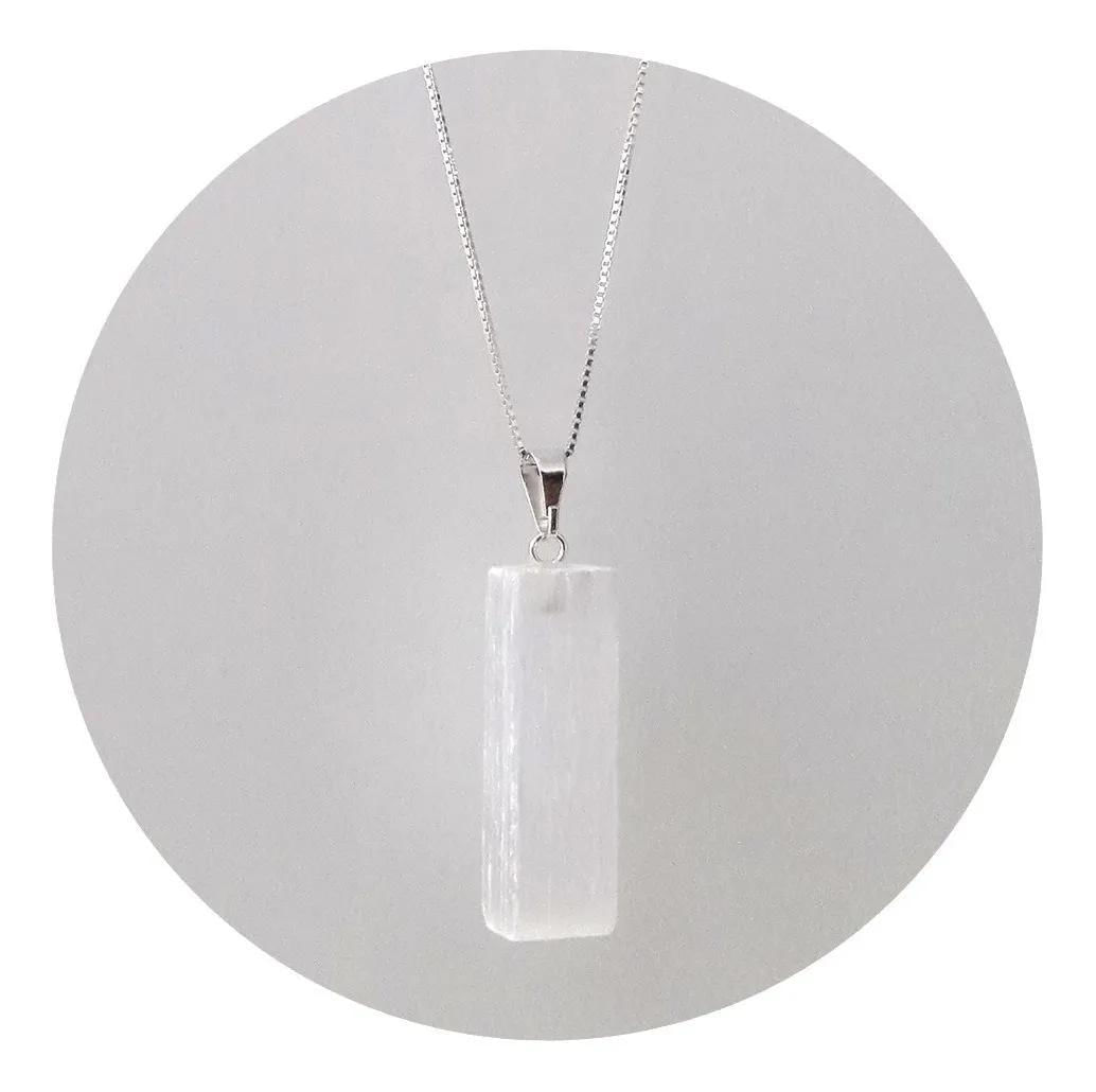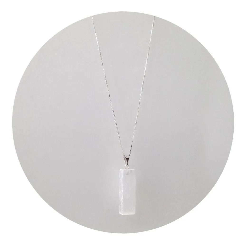 Colar Elo Veneziano Em Prata 925 Com 45cm E Pingente Em Pedra Selenita.