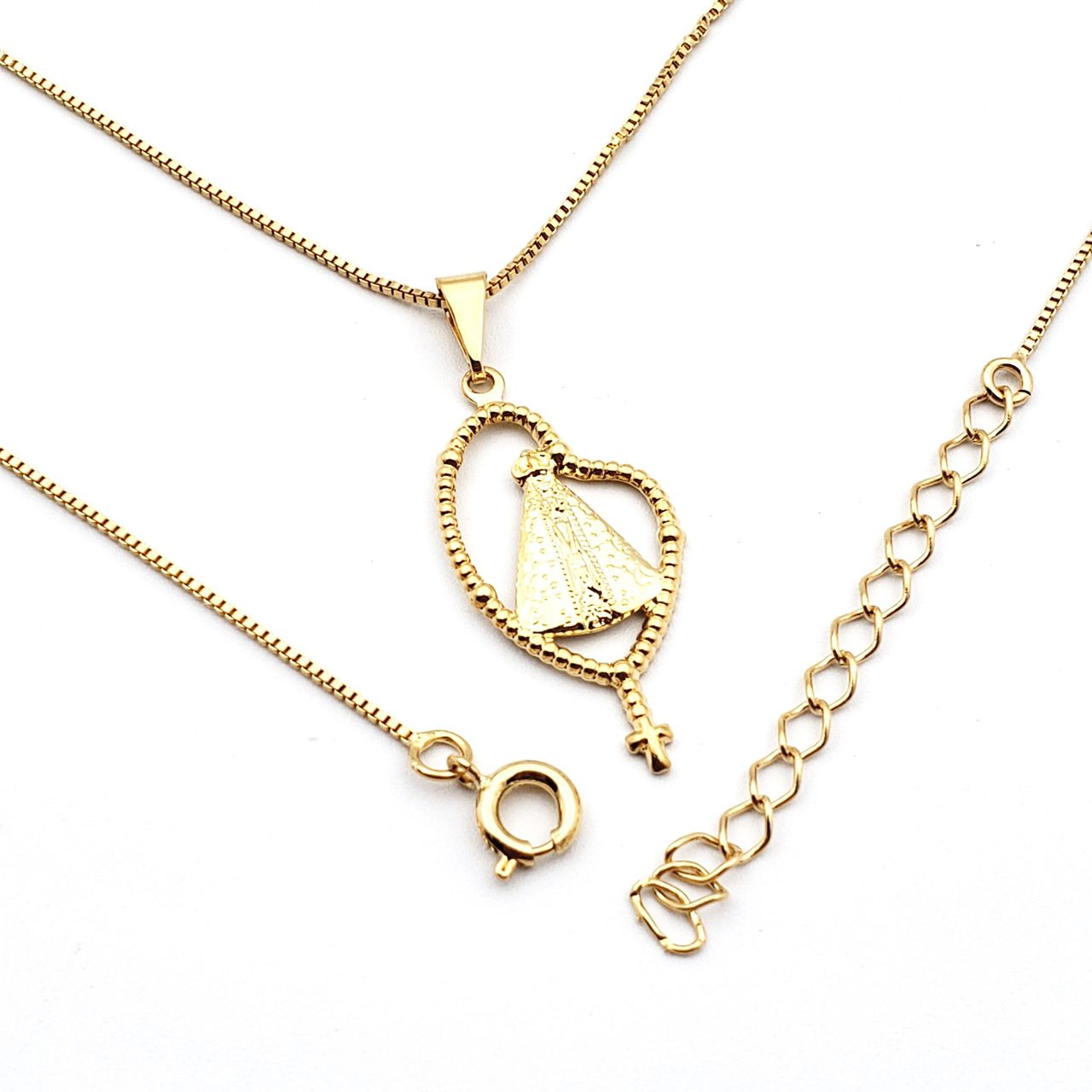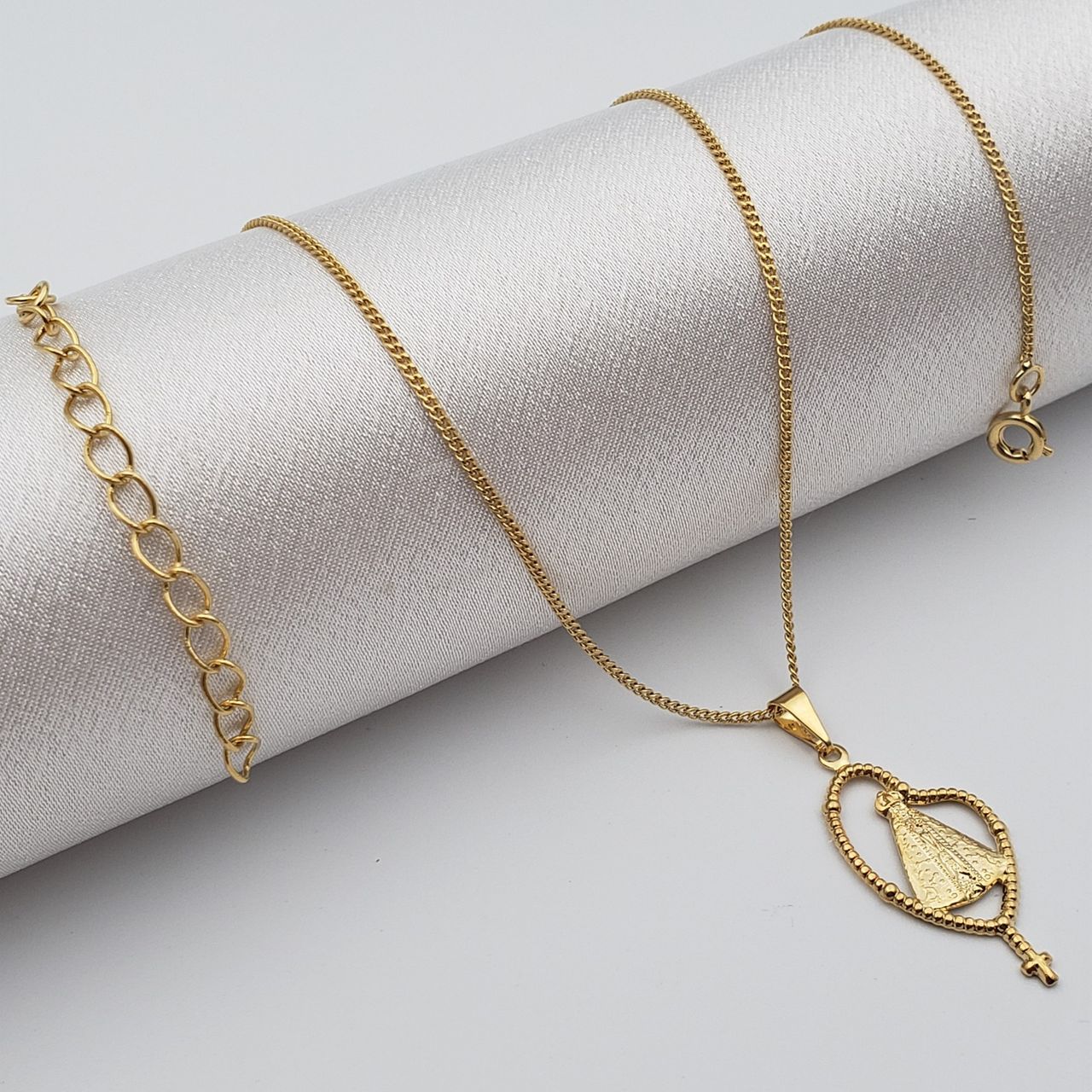 Conheça A C2cam: C2cam Assessórios Está A Mais De 5 Anos No Mercado Oferecendo O Melhor Em Semi Joias Para Nossos Clientes. Ideal Para Presentear A Quem Ama, Ou Mesmo, Se Presentear. Todas As Peças Recebem Banho De Alta Qualidade Proporcionando Assim Um Brilho Impecável. Presamos Pela Qualidade De Nossos Produtos E Também Pela Satisfação De Nossos Clientes. Todas As Peças Possuem Garantia No Banho E Defeito De Fabricação. Oferecemos Desde Peças Mais Simples Até Peças Mais Sofisticadas E Trabalhadas. Seguindo Sempre As Tendências Do Seguimento. ////////////////////////////////////////////////////////////////////////////////////////// Por Que Comprar Conosco: Só Trabalhamos Com Peças De Alta Qualidade, Banhadas A Ouro, Prata Ou Ródio Negro. Todas As Peças Recebem Uma Camada De Verniz Antialérgico. Semi Joias Com Excelente Durabilidade. Semi Joias Com Garantia. Todas Nossas Peças Vão Com Certificado De Garantia E Nota Fiscal. Postagem Feita Em Até 24 Horas Após A Confirmação Do Pagamento, Caso O Pagamento Seja Confirmado Até As 12:00, Postagem No Mesmo Dia Da Compra. //////////////////////////////////////////////////////////////////////////////////////// Perguntas Frequentes: As Semijoias São Antialérgicas? Sim, Todas Peças Disponibilizadas Pela C2cam São Semi Joias Antialérgicas. Pois Recebem Uma Espeça Camada No Banho (ouro, Prata Ou Rodio Negro) E Uma Camada De Verniz Antialérgico, Garantindo Assim, Um Acabamento Perfeito E De Alta Qualidade. As Peças Escurecem? Por Se Tratar De Uma Semi Joia E Não De Uma Joia Pura, Com O Tempo Ela Ira Perder A Cor, O Que Vai Diferenciar É A Qualidade Do Banho. Nossas Peças Recebem Banho De Excelente Qualidade E Uma Camada De Verniz Que Protege Ainda Mais A Peça, Tornando Sua Vida Útil Muito Maior Do Que A Maioria Do Que É Oferecido No Mercado. Quais Cuidados Devo Ter Com A Peça? Evite Produtos Químicos Como Shampoo E Sabonetes Evite Perfumes Encima Da Peça Evite Umidade, Suor Ou Qualquer Produto Abrasivo. Após O Uso: Limpar Suavemente As Peças Com Flanela Seca: Guardar As Peças Separadamente, Evitando Atrito. E Se Não Tomar Os Cuidados Indicados A Peça Perdera A Cor Rápidamente? Não, Mais Sua Vida Útil Irá Diminuir. Tomando Os Cuidados Indicados Você Terá Uma Peça Que Durará Anos. ////////////////////////////////////////////////////////////////////////////////// Descrição Colar Gargantilha 45cm + 5cm Extensor Nossa Senhora Folheado A Ouro Pingente Pequeno: 3,0cm X 1,5cm (axl) Disponível A Pronta Entrega, Enviamos Para Todo Território Nacional. garantia: garantia De 6 Meses No Banho E Defeitos De Fabricação. ficha Técnica - Materiais: Folheado Ouro - Largura Corrente: 1mm - Diâmetro Corrente: 45 Cm + 5cm Extensor - Pingente: 1,3cm - É Regulável: Não - Estilos: Moderno - Cor: Dourado - É Hipoalergênica: Sim