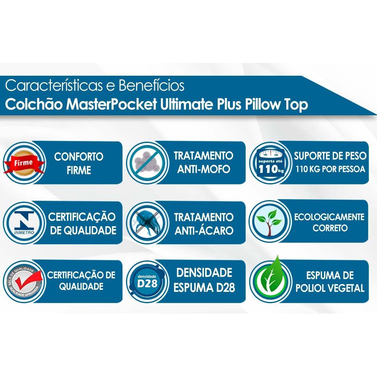 Colchã,o Casal Molas Ensacadas Masterpocket Ultimate Plus Pillow Top (138x188x34) - Probel Marca: Probeldimensõ,es(cm): Comprimento(profundidade): 188cm X Largura: 138cm X Altura: 34cm Tipo De Colchã,o - Anatô,mico Vantagens Extras De Colchã,o - Ecologicamente Correto - C/ Sistema Polyframe - Manta Acrí,lica - Eps Tipo De Pillow - Pillow Top Americano Tecido Com Tratamento Do Colchã,o - Antiá,caro E Antifungo Bordado Do Revestimento Do Colchã,o - Matelassê, Forraç,ã,o Revestimento Do Colchã,o - Malha De Alta Qualidade Forraç,ã,o Do Revestimento Inferior Do Colchã,o - Antiderrapante Tecido De Revestimento Da Faixa Lateral Do Colchã,o - Suede Modo De Utilizaç,ã,o Do Colchã,o - One Side Camadas Interna Do Estofamento De Espuma Do Colchã,o - Hiper Soft - D28 Tipo De Estrutura Do Bloco De Espuma Do Colchã,o - Eps Tipo De Espuma Do Colchã,o - Espuma De Poliol Vegetal Tipo De Mola Do Colchã,o - Ensacadas Masterpocket Ní,vel De Firmeza Do Colchã,o - Macio C/ Firmeza Peso Má,ximo Suportado Do Colchã,o - 110 Kg Certificaç,ã,o De Qualidade Do Colchã,o - Qualidade Aprovada Nossa Avaliaç,ã,o Do Colchã,o - Qualidade Boa Tempo De Garantia Do Colchã,o - 3 Mesesimagens Meramente Ilustrativas.nã,o Nos Responsabilizamos Pela Montagem/instalaç,ã,o Dos Produtos.todas As Informaç,õ,es Divulgadas Sã,o De Responsabilidade Exclusiva Do Fabricante/fornecedor.verifique Com Os Fabricantes Do Produto E De Seus Componentes Eventuais Limitaç,õ,es à, Utilizaç,ã,o De Todos Os Recursos E Funcionalidadesconfira As Dimensõ,es Do Produto E Analise Se Irã,o Passar Normalmente Por Elevadores, Portas, Escadas E Corredores, Pois Nã,o Nos Responsabilizamos Caso O Produto Necessite Durante A Entrega De: Desmontagem, Subir Escadas Ou Ser Transportado Por Guincho, Cordas Para Apartamentos. A Entrega Limita-se Ao Descarregamento Em Local Que Tenha E Ofereç,a Total Facilidade De Acesso Normal,só, Fazemos Entregas Por Transportes Rodoviá,rios. Nã,o Realizamos Entregas Por Transportes Fluviais, Aé,reos E Outros Diferente De Rodoviá,rio. Nã,o Realizamos Entregas Na Regiã,o Norte: Amapá,, Amazonas, Pará,, Roraima E Acre,temos á,reas Com Restriç,ã,o E ,dificuldades Que Os Transportadores Rodoviá,rios Nã,o Atendem. á,rea De Difí,cil Acesso, á,rea De Risco, á,rea Rural, á,reas Fluviais, Estradas Nã,o Pavimentadas,sendo Assim, Caso Seu Endereç,o Esteja Em á,rea Restrita De Entrega, A Retirada De Sua Compra Deverá, Ser Realizada No Cd Do Transportador Ou Indicar No Momento Da Compra Um Endereç,o Entrega Fora Da á,rea Restrita,caso Realize Pedido ,com Entregas Em Locais De Difí,cil Acesso Ou á,reas Com Restriç,ã,o E Dificuldades Que Os Transportadores E Proprio Correios Nã,o Atendem, A Compra Sera Cancelada Pela Costa Rica Colchõ,es, Com A Devida Comunicaç,ã,o E Estorno Do Pagamento Ao Cliente.