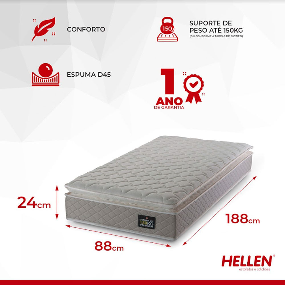 | Itens Inclusos | Colchão Solteiro Strong One Face Espuma D45 Hellen |