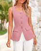 - Características: Colete Feminino / Coletes Sem Mangas / Coletes De Terno De Gola Quadrada / Colete Blazer De Botão / Colete De Ajuste Fino / Bolsos Com Aba Decorativa