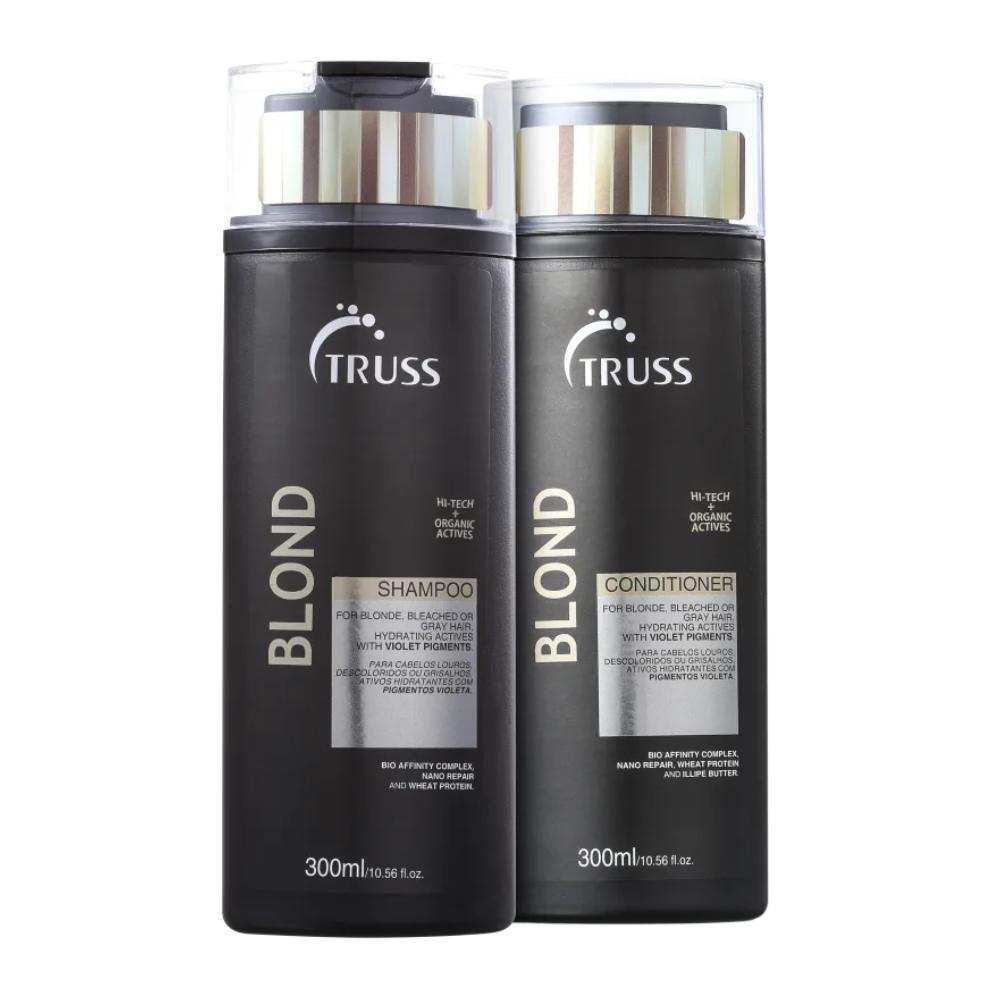 Kit Shampoo E Condicionador Para Cabelos Loiros Descoloridos Ou Com Luzes. Truss Blond Duo Combate O Tom Amarelado E Fortalece Os Fios.