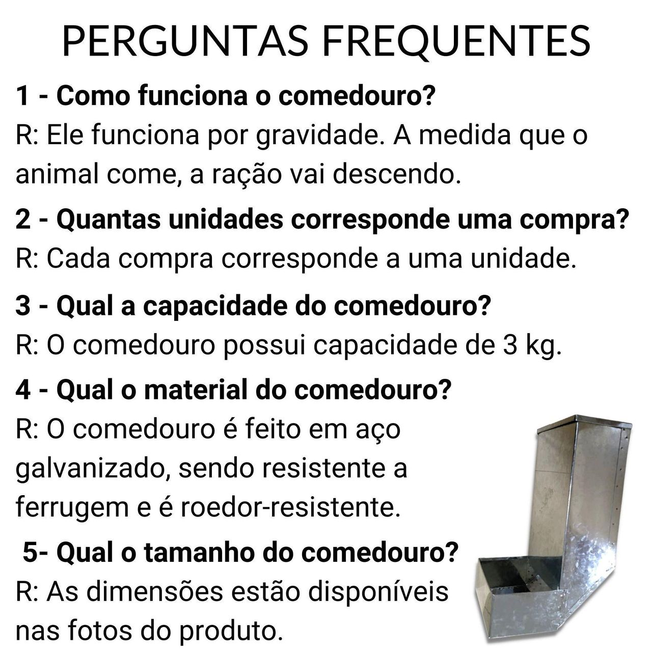 com Capacidade Para 3 Kg De Ração, Você Pode Colocar A Quantidade Necessária De Uma Só Vez, Garantindo Que Seu Cão Tenha Sempre Comida Fresca Disponível. O Comedouro É Feito Em Aço Galvanizado, O Que O Torna Extremamente Resistente E Durável, Podendo Resistir A Eventuais Choques.