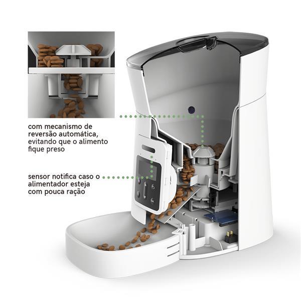É Possível Programar Toda A Rotina De Alimentação Com Instruções Detalhadas Através Do Painel Lcd. Incluindo A Gravação De Uma Mensagem De Voz De Até 10 Segundos Chamando Seu Pet Na Hora Da Refeição. O Compartimento Do Auto Feeder Conta Com A Capacidade De Até 4l De Ração Seca. Permitindo A Programação De Até 6 Refeições Diárias E Ajustes Para Até 50 Porções De 5g Cada. Você Tem Medo De Deixar Seu Pet Na Mão Caso Esqueça De Reabastecer O Compartimento Ou Caso O Alimento Fique Preso No Mesmo Não Se Preocupe O Auto Feeder Conta Com Um Sensor Embutido Que Notifica Caso O Alimentador Tenha Pouca Ração E Com Um Mecanismo De Reversão Automática Que Evita Problemas De Alimentos Presos Para Que Seu Pet Nunca Passe Fome O Auto Feeder É Indicado Para Cachorros E Gatos De Todos Os Portes E Perfeito Para Você Que Preza Pela Sua Liberdade E Do Seu Pet