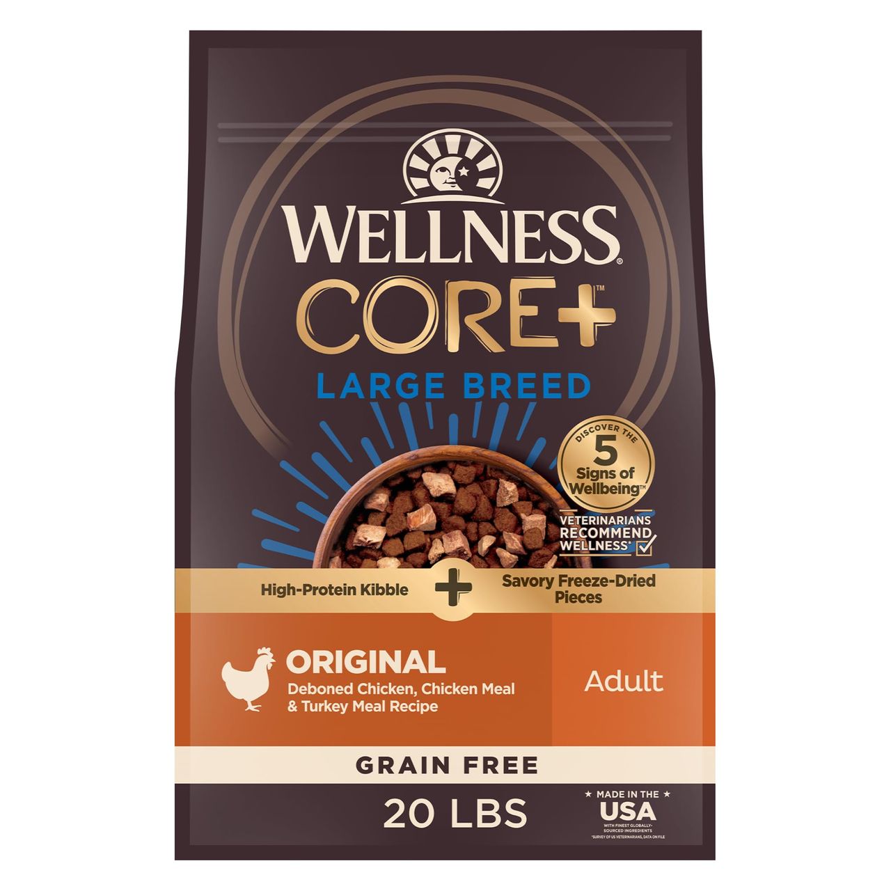 - Comida Seca Para Cães Adultos De Raças Grandes: Ração Rica Em Nutrientes, Combinada Com Pedaços De Frango 100% Crus Liofilizados Para Uma Ração Saborosa Para Cães, Com Níveis De Proteína Essencial, Alto Teor De Fibras E Calorias, Seu Cão De Raça Grande Precisa Para Prosperar.