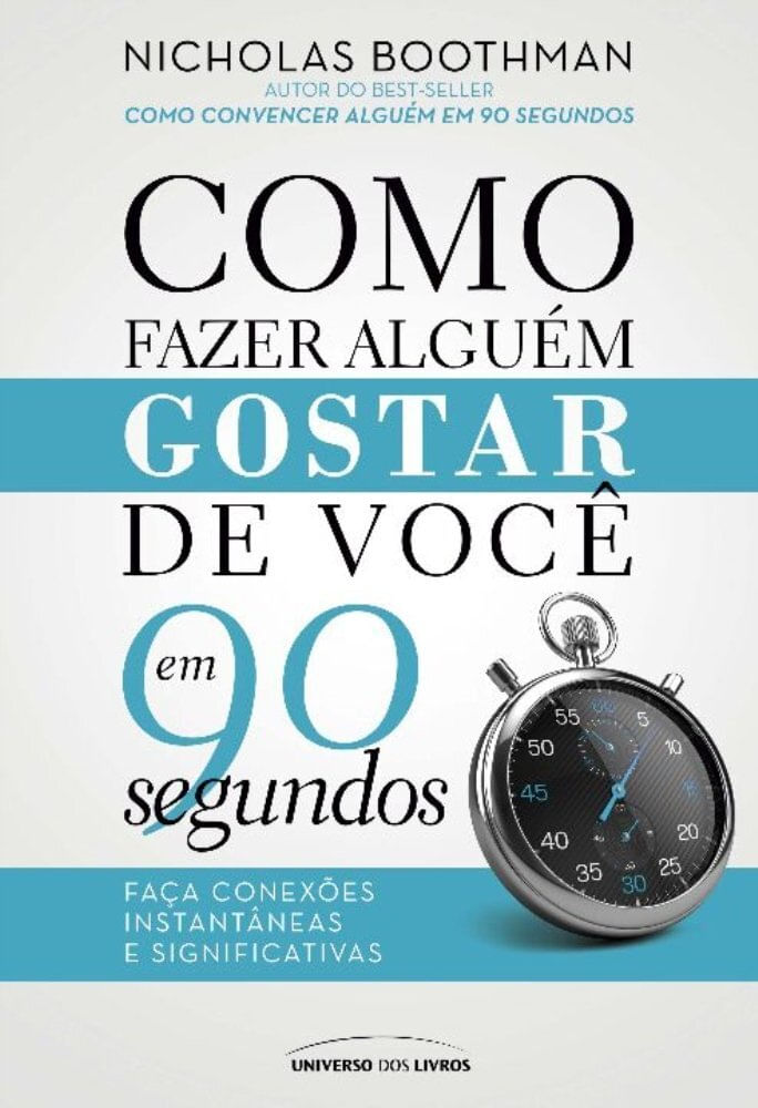 Do Mesmo Autor Do Best-seller Como Convencer Alguém Em 90 Segundos! Aprenda A Criar Uma Impressão Positiva Por Meio De Sua Atitude E Linguagem Corporal E A Fazer Conexões Instantâneas E Significativas, Tirando Melhor Proveito Do Momento Mais Crítico De Qualquer Relacionamento: Os Primeiros 90 Segundos! Seja Para Participar De Uma Entrevista De Emprego, Vender Um Produto, Gerenciar Um Negócio, Apresentar Uma Ideia Ou Mesmo Procurar Sua Alma Gêmea, O Segredo Do Sucesso Está Em Conseguir Se Conectar Com Outras Pessoas. E Você Pode Fazer Isso Em Até 90 Segundos Com O Auxílio De Nicholas Boothman, Mestre Em Programação Neurolinguística (pnl) E Autor Best-seller. Em Como Fazer Alguém Gostar De Você Em 90 Segundos, O Autor Fornece Um Passo A Passo Para Não Apenas Obter A Atenção De Alguém, Mas Manter A Pessoa Atenta Por Tempo Suficiente Para Captar Sua Mensagem Ou Intenção! Para Isso, Ele Apresenta Conceitos Importantes Como Sincronia E Linguagem Corporal Aberta E Fechada, Além De Ensinar Como Ser Um Ouvinte Ativo E A Identificar As Três Preferências Sensoriais Mais Importantes: Visuais, Auditivas E Cinestésicas. Boothman Indica Ainda Dezenas De Exercícios Curtos E Simples Para Ajustar Suas Habilidades Naturais De Se Conectar Com Outras Pessoas. Desenvolva Sua Capacidade De Se Comunicar Efetivamente E Faça Conexões Instantâneas E Significativas Em Até 90 Segundos! Sobre O Autor: Nicholas Boothman Passou Mais De Duas Décadas Estudando Programação Neurolinguística (pnl), Os Meios Pelos Quais Os Seres Humanos Se Conectam, Se Comunicam E Colaboram Entre Si. Boothman Tornou-se Mestre Em Pnl E Ensinou Sua Técnica Revolucionária Em Empresas, Faculdades E Universidades Em Todo O Mundo, Incluindo A Universidade De Harvard E A London Business School. Seus Programas De Certificação Corporativa São Ministrados Por Instrutores Licenciados Na América Do Norte, Europa, Ásia E África, E Ensinam Habilidades Sociais Interativas De Aumento Da Autoconfiança. Um Ex-fotógrafo De Moda E Publicidade Que Lidou Com Centenas De Rostos Novos Por Semana Para Clientes Como At&t, Revlon E Coca-cola, Boothman Agora É Um Especialista Mundialmente Conhecido Em Transformar Primeiras Impressões Em Relacionamentos Duradouros. Do Mesmo Autor, Leia Também: Como Convencer Alguém Em 90 Segundos Como Fazer Alguém Se Apaixonar Por Você Em Até 90 Minutos