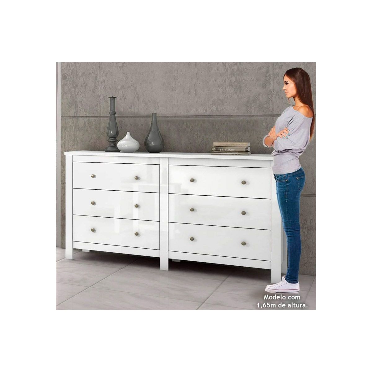 Cômoda Lopas Horizontal Maggiore c/ 6 Gavetas - Branco Marca: LopasDimensões(Cm): Comprimento(Profundidade): 49,00 x Largura: 162,50 x Altura: 92,50 CARACTERÍSTICAS DE MÓVEIS Tipo de Estrutura do Móvel - 100% MDF Tipo de Pintura - UV (Ultravioleta) - Pintura MicroTexturizada Tipo de Acabamento da Pintura - Pintura Alto Brilho ou Fosca Tipo de puxador - Metálico Quantidade de Gavetas - 6 Gavetas Diferenciais da Gaveta - Corrediças Telescópicas Garantia - 3 Meses Não nos responsabilizamos pela montagem/instalação dos produtos. Todas as informações divulgadas são de responsabilidade exclusiva do fabricante/fornecedor. Imagens Meramente Ilustrativas. Verifique com os fabricantes do produto e de seus componentes eventuais limitações à utilização de todos os recursos e funcionalidades.
