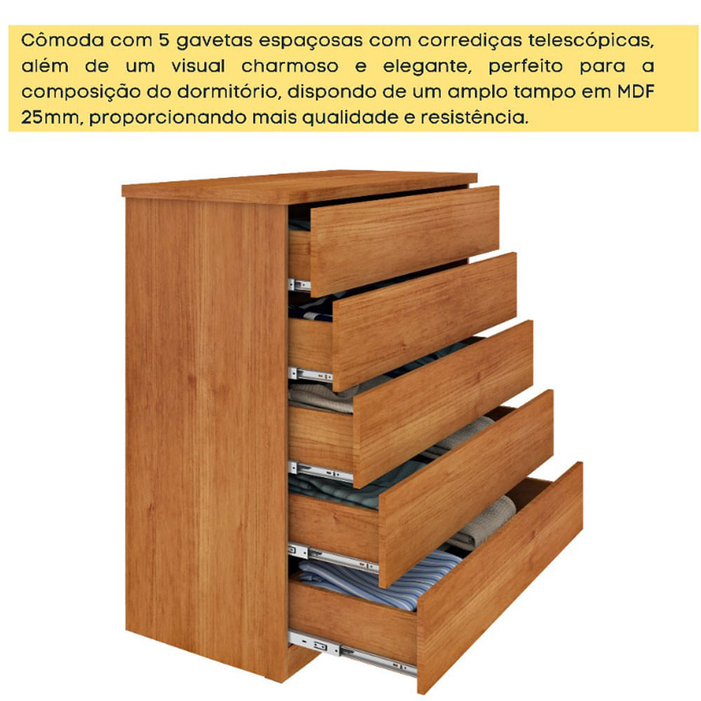 MóveisQuartoCômodaCômoda Premium Mdf Com 5 Gavetas Tcil