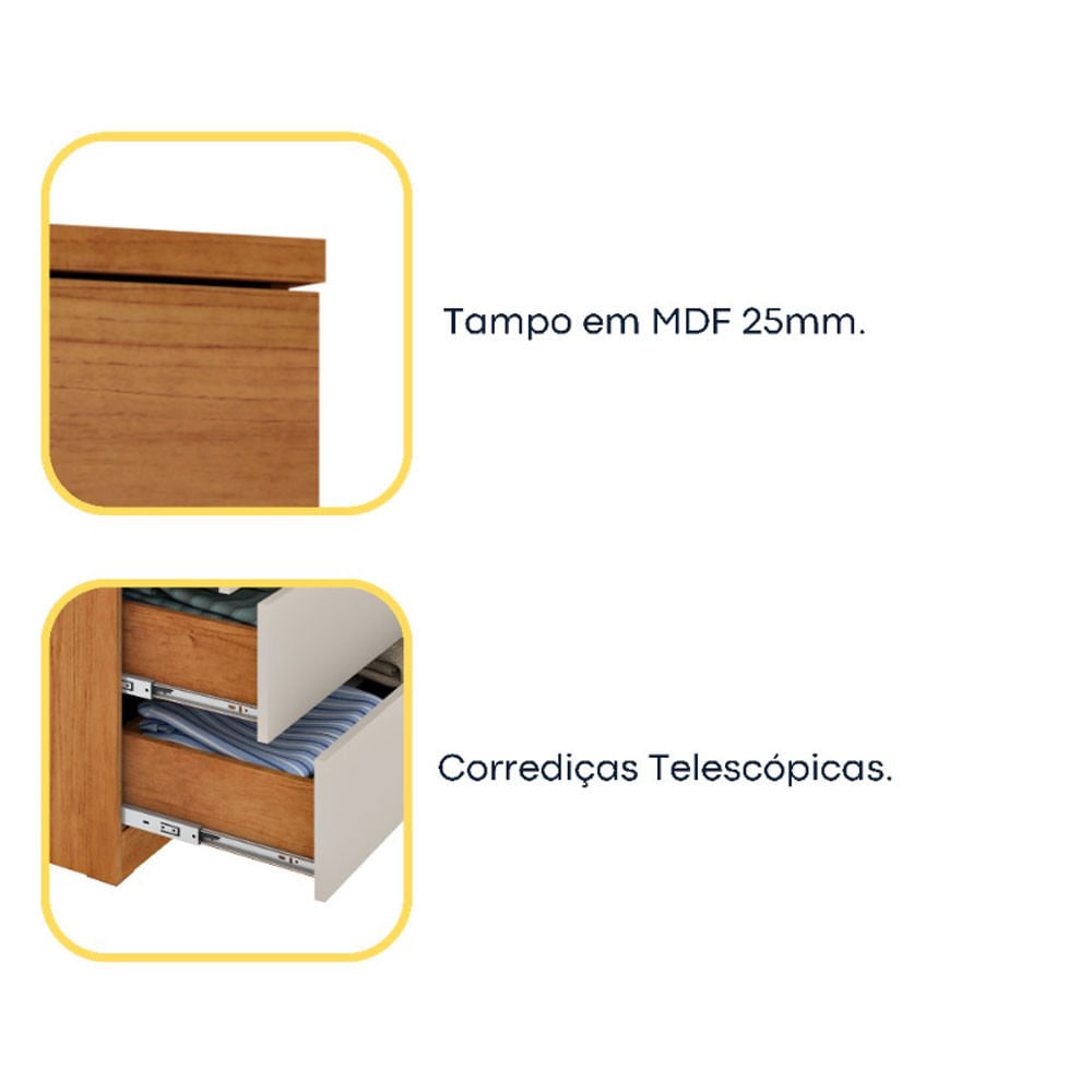 Tampo Em Mdf 25 Mm: Garante Espaço Adicional Para Acomodar Itens De Decoração Ou Organização, Como Porta-retratos, Porta-joias, Televisão E Até Quadros (apoiados No Móvel E Encostados Na Parede)