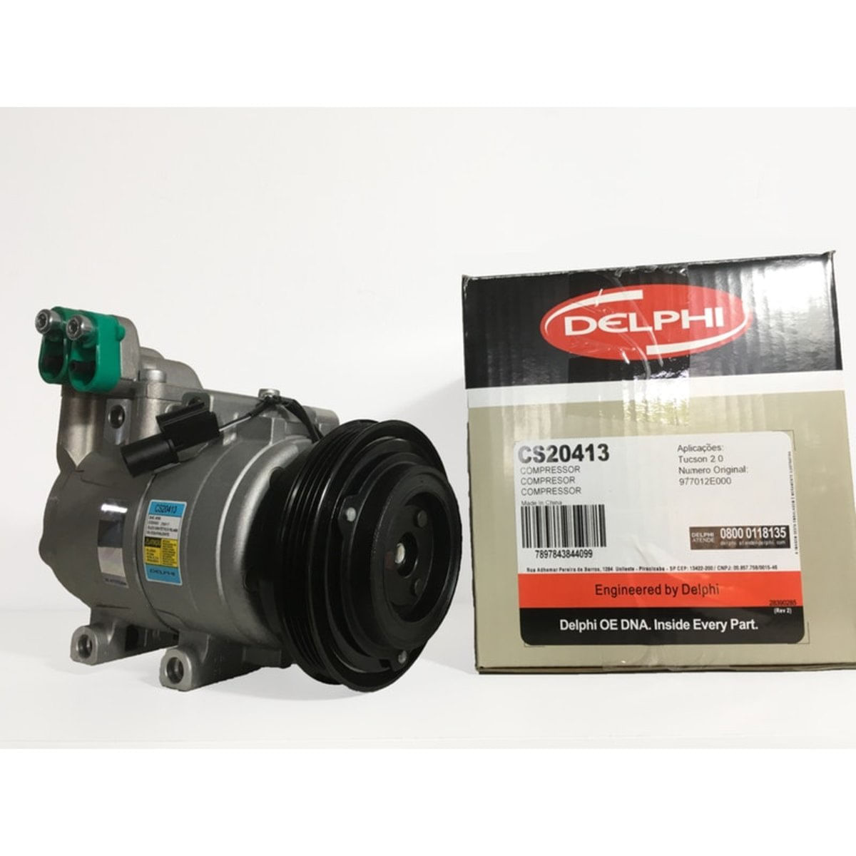 Compressor de ar condicionado automotivo para Hyundai Tucson 2.0.modelos 2010 a 2015.Produto original Delphi.Garantia de 3 meses.Código Delphi: cs20413.Código original da montadora: 977012E000