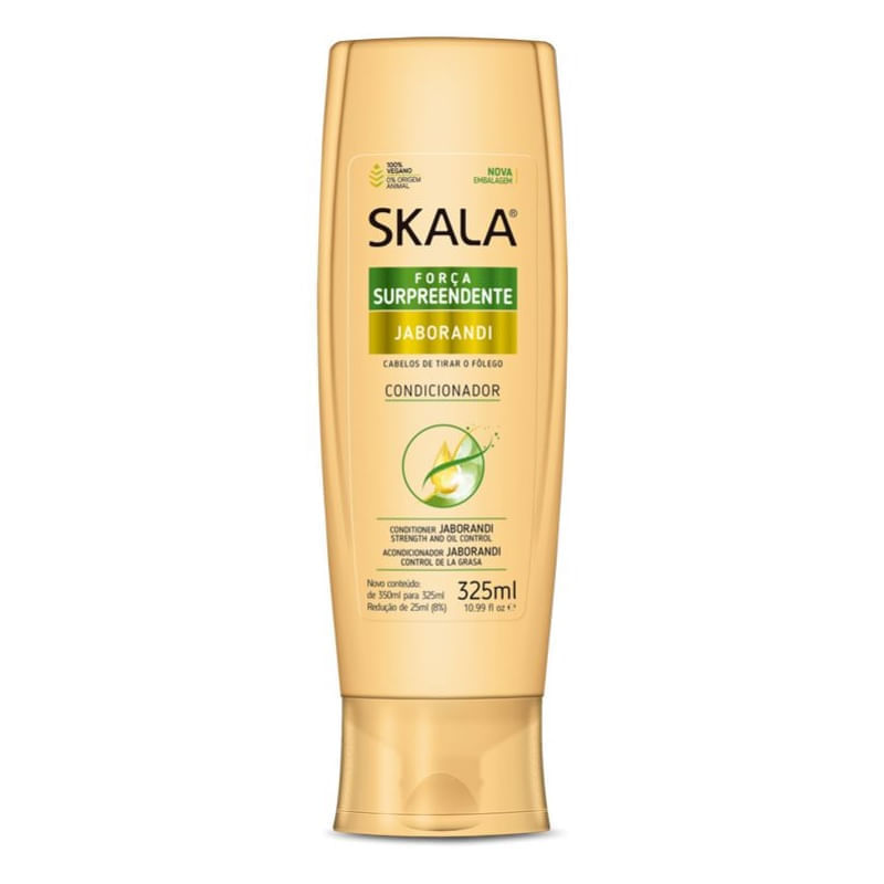 O Condicionador Skala Jaborandi 325ml conta com uma formula 100% vegana sem teste em animais, além disso o Condicionador Skala promove hidratação, tonificação e controla a oleosidade dos fios...Modo de usar: Após lavar o cabelo com shampoo, aplique o Condicionador Seda por toda a extensão dos fios, massageando suavemente. Deixe agir por alguns minutos. Enxágue...Sobre a marca: A Skala surgiu no mercado de cosméticos há mais de 32 anos. Veio para mudar a vida de milhares de mulheres brasileiras, trazendo uma nova forma de cuidar dos cabelos. Ela inventou o Creme de 1000g e o “Banho de Creme”! Desde então isso se tornou um hábito na vida das brasileiras e se espalhou pelo mundo.