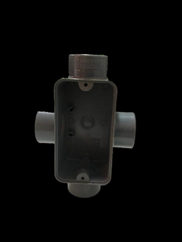 Condulete 3/4" PVC X - Condulete 3/4" PVC.. CONDULETE 3/4" - PVC..Modelo:..O condulete é uma caixa que tem como finalidade proteger os cabos elétricos e dar acesso à algumas partes dos cabos que estão dentro de eletrodutos em instalações elétricas...Características Gerais do Produto:.. Cor: Cinza. Material: PVC. Dimensões (mm) / Peso (g): 0,13 (A) x 0,09 (L) x 0,045 (C) / Aproximadamente 20g..Acompanha o produto:.. 1 Condulete. 2 Parafusos..Garantia:.. 3 meses com a loja
